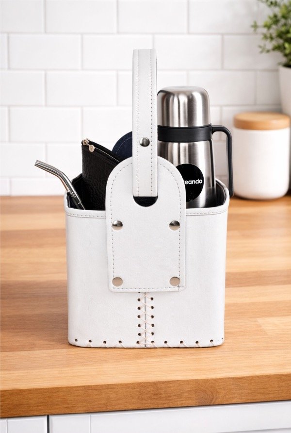 Matera Canasta de Cuero Ecológico — Práctica, elegante y lista para acompañarte