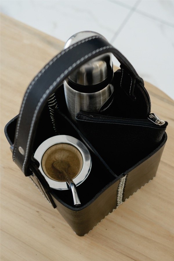 Espacio para Accesorios: Además del mate y el termo, la matera ofrece un compartimento extra que puede adaptarse para guardar una yerbera, una botella o cualquier accesorio que necesite.