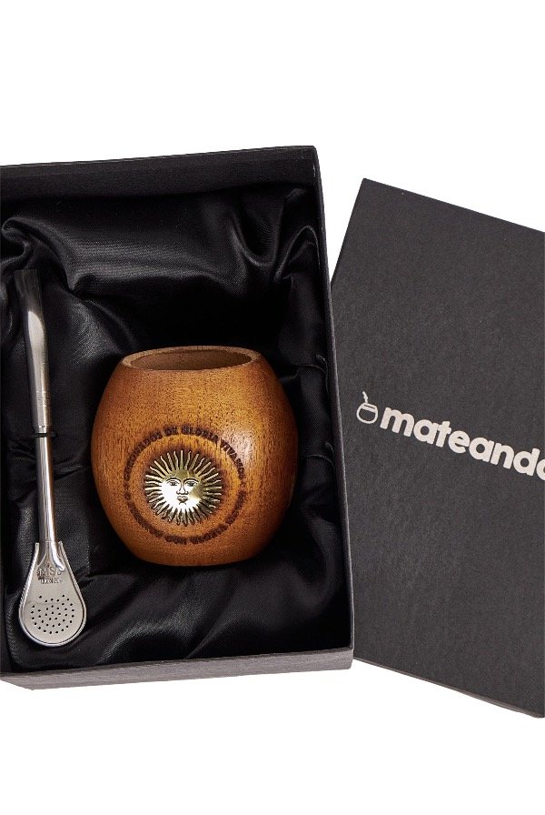 Descubre la esencia del mate argentino con el Mate Algarrobo Sol De Mayo Argentino de la marca Mateando. Este mate, elaborado en algarrobo con un elegante aplique de fundición de bronce, combina tradición y calidad en cada sorbo.